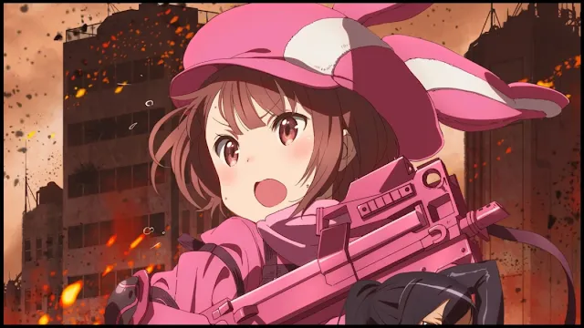 الموسم الأول من الأنمي ، الذي تم بثه في أبريل 2018، يصور معركة ملكية مع تطاير الرصاص الثقيل بين البطلة لين وعدوتها بيتوهوي. لقد حظي التصوير التفصيلي للأسلحة النارية ومشاهد المعركة القوية بإستحسان كبير ليس فقط من قبل محبي SAO ولكن أيضًا من قبل عشاق الأسلحة ومحبي الأنمي في كل أنحاء العالم.